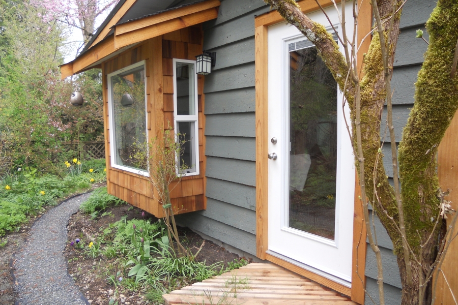 Our suite was built with sustainable materials to the greatest extent possible, including cork flooring and gorgeous bamboo kitchen cabinets. All appliances are low-flow and energy efficient. As sustainability is important to us, we provide recycling and composting.